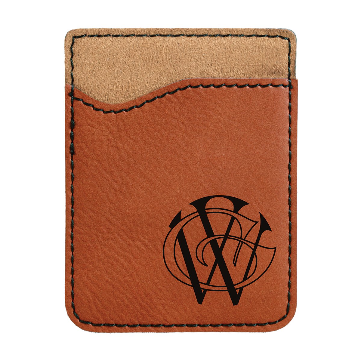 Laserable Rawhide Leatherette Phone Wallet offers the look and feel of genuine leather at a fraction of the price. This richly textured, synthetic material is water resistant, easy to clean and durable enough for the rigors of daily use. The high quality workmanship of each leatherette piece is sure to impress every recipient with its elegant individuality. The wallet is laser engraved, leaving a beautiful black imprint. Holds up to 2 cards and has a 3M adhesive to stick on back of phone. 2 3/8″ L x 3 1/8″ H